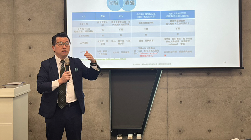 在專題分享環節中,多位橫跨法律、稅務與資產管理領域之專家,從實務角度深入解析跨境規劃的關鍵議題,包括CFC制度下之合規申報策略、AI查稅機制下的補救途徑、美國信託架構應用,以及保險與稅務整合規劃等,內容兼具理論深度與實務可行性。