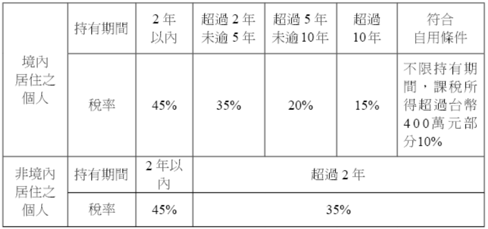 附註:台灣新制所得稅房地合一稅