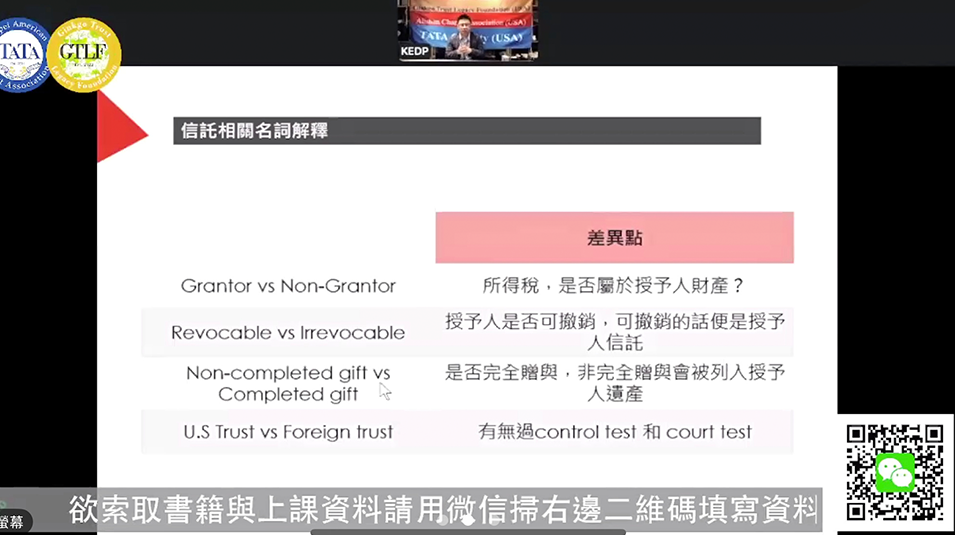 臺北市美國信託傳承協會 - 不可撤銷信託架構、合約問題與稅務申報相關流程