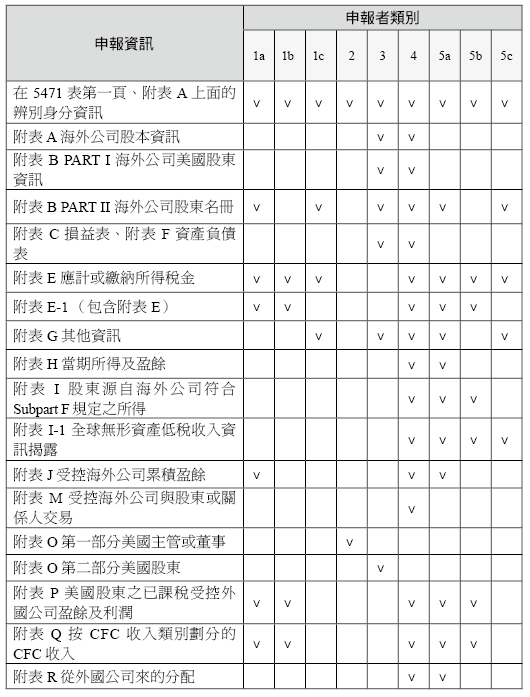以下為5471表中的五類人士定義,於稅務年度2020年第一類分為1a、1b、1c 而第五類也分成5a、5b、5c。