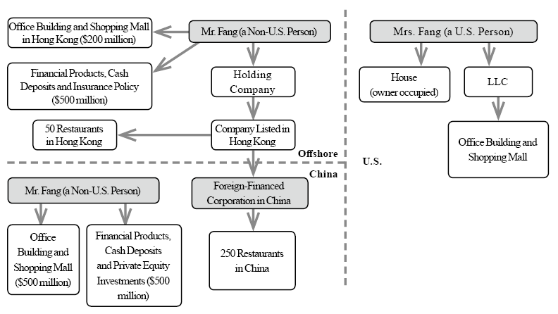 (2) Since many of Mr. Fang’s family members have immigrated to the U.S. over the years, Mr. Fang should transfer a proportion of his assets into the U.S. He should do so before applying for U.S. Green Card or Citizenship for himself, if he wishes to do so. An irrevocable trust can serve as an excellent vehicle to hold his funds currently held by offshore companies in Hong Kong or Singaporean bank accounts.