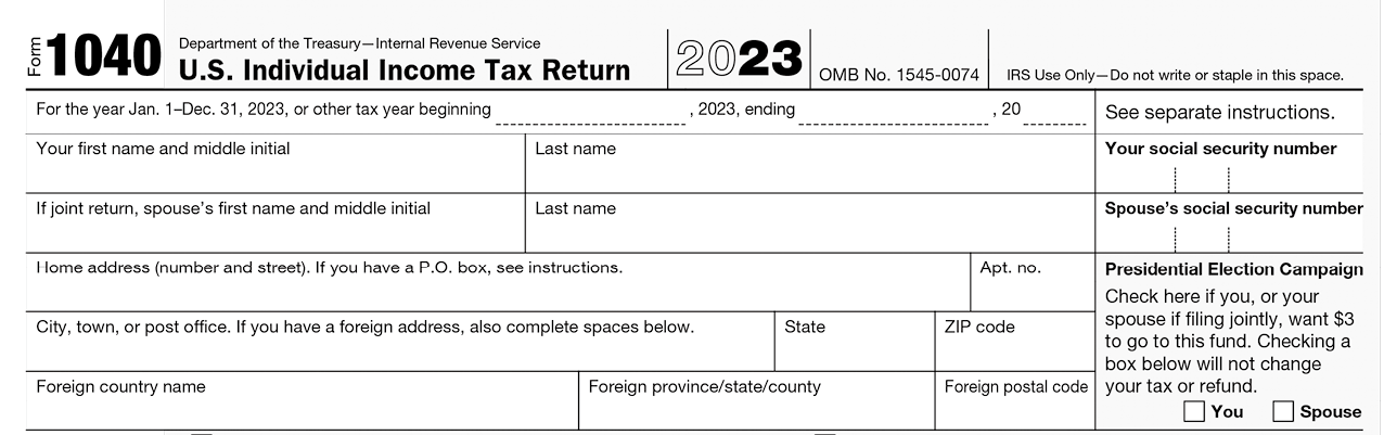 美國公民或居民外國人(非美國公民,但屬於聯邦所得稅法上的稅務居民)通常必須以個人身分提交所得稅申報書(1040表)。如果個人的總所得低於美國國稅局規定的特定門檻(例如,在2023年,未滿65歲的單身納稅人其年度總所得低於13,850美元,或是未滿65歲的已婚納稅人其與配偶合併申報的年度總所得低於27,700美元),或許得以免除申報1040表之義務。