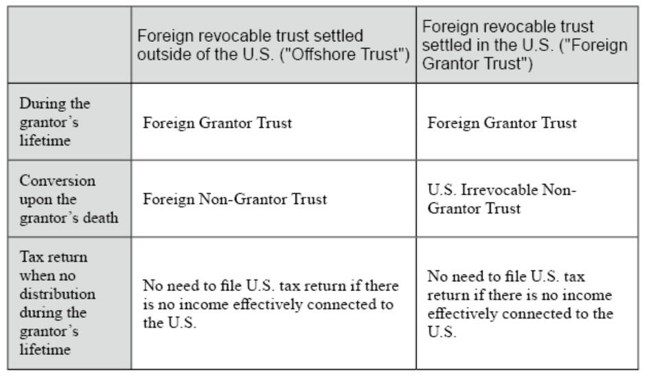 Prior to settling a U.S. trust, a non-U.S. person should consider ① whether the assets he wishes to place in the trust are U.S.-based assets (or generate income effectively connected to the U.S.) and ②whether the beneficiaries (current and future) are U.S. persons or non-U.S. persons.